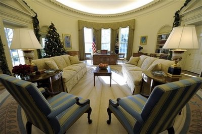 雖然每一位新上任的總統(tǒng)都喜歡將總統(tǒng)辦公室裝飾成自己喜歡的樣子,但是奧巴馬在上任后卻反對在這里大動干戈,他認(rèn)為在金融危機(jī)的狀況下這樣做是在向美國人民發(fā)出錯誤的信號。但在他執(zhí)政一年之后,這里也開始融入了些這位新總統(tǒng)的品位。
