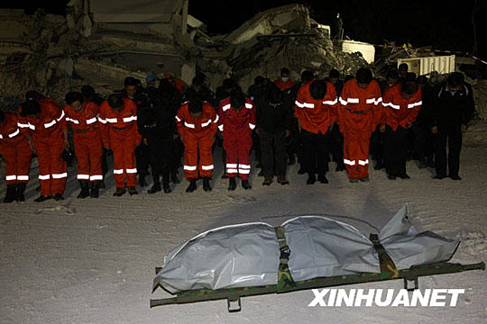 目前,救援隊(duì)正按照孟建柱的要求,爭分奪秒,竭盡全力搜救中國被埋人員。最新消息稱,中國國際救援隊(duì)已于海地當(dāng)?shù)貢r(shí)間16日凌晨3時(shí)30分發(fā)現(xiàn)第一具中方失蹤人員遺體,F(xiàn)場人員對(duì)這名遇難中國人舉行了默哀儀式。對(duì)其他幾名中國維和人員的搜救工作仍在進(jìn)行中。