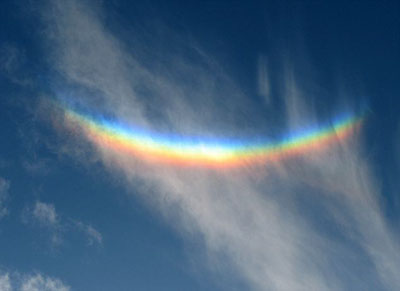 專家解釋,一般彩虹的出現(xiàn),是光線穿透雨點后折射到另一處時所產(chǎn)生的現(xiàn)象。但這朵天空中的“微笑”是日光穿透卷云或層云中的數(shù)百萬顆細微冰晶粒子時形成。