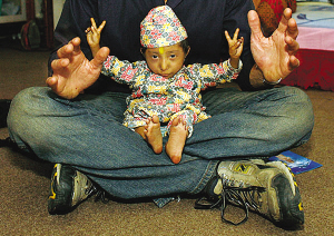 卡根德拉出生時只有600克重,F(xiàn)在,他也只有4.5公斤重,身高也只有約61厘米。他的母親塔納說,他剛生下來時“就像一只剛從蛋殼里孵出來的小雞!笨ǜ吕母赣H魯普說,兒子和家人吃一樣的食物,但就是長不大,“直到8歲時才能獨立行走”。去年,家人發(fā)現(xiàn)卡根德拉停止長個兒。醫(yī)生至今無法對卡根德拉無法長大的原因給出解釋,但猜測這可能與腦垂體機(jī)能失常有關(guān)。