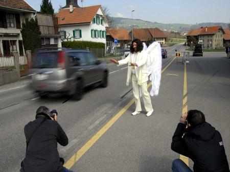 中新網(wǎng)5月13日電 據(jù)臺灣“今日新聞網(wǎng)”13日報道,瑞典警方為了防止民眾在道路上開快車,就想出一個“守護(hù)天使”計劃。警察們雇用一個演員扮演“白衣天使”,并要他站在路旁勸路過的來車開慢一點,以免他們因超速駕駛而出車禍。