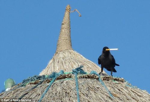 報道稱,茱迪和埃利斯在馬爾代夫度假時意外發(fā)現(xiàn)一只烏鴉竟叼著一包香煙從他們頭頂飛過,并降落在臨近的草屋屋頂上。