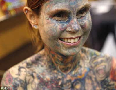 希努斯又被人們叫作“插圖女”。她身上的圖案類型豐富,有叢林景色,還有她最喜歡的演員的肖像畫。起初,希努斯開始紋身是因為她患有先天性的卟啉病,一見太陽皮膚就會發(fā)皰、留疤。她紋身后雖然病情沒有好轉(zhuǎn),但是這些紋身蓋住了身上的傷疤,她也可以暴露在太陽下了。后來,隨著紋身面積不斷擴大,她深陷其中不能自拔。在博覽會上她提到她所有的紋身都是同一位大師的杰作。