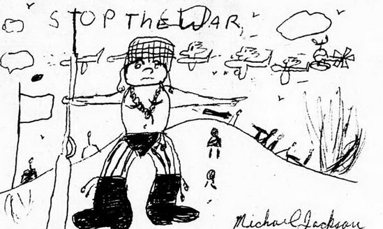 1988年杰克遜在參觀羅馬時(shí)看到一個(gè)小男孩,隨即迅速畫下了他的臉龐。當(dāng)回到下榻酒店他和朋友說(shuō):“看他的眼神,和我多像啊”。然后他還在旁邊署上:邁克爾·杰克遜,1988,于意大利。