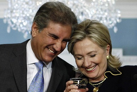 在與來(lái)訪的巴基斯坦外交部長(zhǎng)馬赫杜姆•沙阿•馬哈茂德•庫(kù)雷希共同出席的新聞發(fā)布會(huì)上,希拉里與客人的“調(diào)情”成為人們茶余飯后討論的焦點(diǎn)。