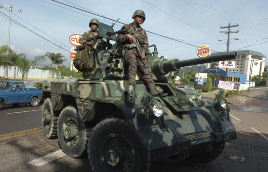 同時(shí),塞拉亞被抓走3個(gè)小時(shí)后,洪都拉斯軍方已經(jīng)完全控制了首都特古西加爾巴的主要街道,同時(shí)切斷了首都和外界的交通往來(lái)。據(jù)悉,軍方出動(dòng)了裝甲車和直升機(jī),在街道和空中進(jìn)行偵察。大量軍隊(duì)在總統(tǒng)府、議會(huì)大廈和最高法院等重要地點(diǎn)集結(jié)。除了上述重要地點(diǎn)外,絕大多數(shù)街道上不見(jiàn)一人,商鋪大門緊閉。