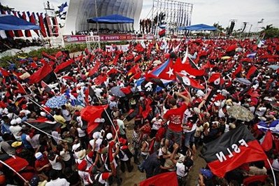 1979年7月19日,桑地諾民族解放陣線(xiàn)(桑解陣)帶領(lǐng)尼加拉瓜人民推翻了索摩查家族長(zhǎng)達(dá)40余年的專(zhuān)制統(tǒng)治,入主首都馬那瓜,聯(lián)合社會(huì)各界政治力量成立了民族復(fù)興政府。但桑解陣在1990年全國(guó)大選中敗北,成為在野黨。之后,桑解陣幾經(jīng)沉浮,于2006年11月重新成為執(zhí)政黨。桑解陣總書(shū)記奧爾特加在2006年11月的尼加拉瓜總統(tǒng)選舉中勝出。
