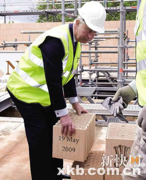 開始的時候,王儲興致勃勃,他拒絕了現(xiàn)場施工經(jīng)理提供的防護(hù)手套。戴上安全帽、穿好防護(hù)馬甲后,查爾斯開始搬運蜂窩狀磚塊,修建圍墻。