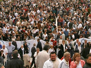 5月26日格魯吉亞反對派在首都第比利斯舉行大規(guī)模游行示威活動,從全國各地趕來的約6.5萬名支持者參加。為了迫使總統(tǒng)薩卡什維利下臺,反對派宣布準備采取激進措施,封鎖鐵路、國道和機場。反對派“為了統(tǒng)一的格魯吉亞”運動領袖別謝利婭在議會大廈前的集會上宣布:“今天我們將封鎖鐵道,從今天起我們將開始最激進的行動!狈磳ε杀J攸h領袖濟濟古里宣布:“我們計劃首先和平封鎖鐵路,然后是機場。我們的行動將是和平的,但極其激進。”反對派“格魯吉亞道路”黨領袖祖拉比什維利宣布:“我們將用汽車封鎖中央(公路)干線,然后步行去封鎖鐵路!