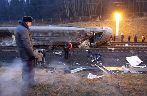 中新網(wǎng)11月28日電 莫斯科時間27日21點34分,由莫斯科開往圣彼得堡的166次“涅瓦特快號”客運列車的幾節(jié)車廂發(fā)生脫軌事故,造成重大人員傷亡。此前俄塔社援引俄緊急情況部的消息說,事件已造成39人死亡,但據(jù)俄新網(wǎng)報道,俄羅斯緊急情況部新聞局局長切爾諾娃反駁了這一消息,稱官方數(shù)據(jù)仍是25人死亡,95人受傷。