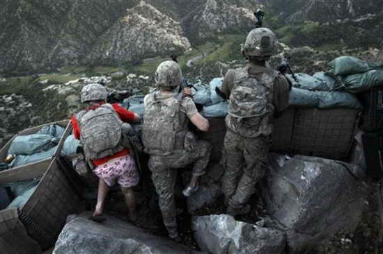 美聯(lián)社的一名攝影記者抓拍的一張照片顯示,19歲的陸軍專業(yè)軍士扎查里伊-波伊德在位于阿富汗庫納爾省科里加爾山谷的雷斯特雷波火力基地內(nèi)進(jìn)入防御陣地,基地當(dāng)時(shí)遭到了塔利班的火力射擊。他當(dāng)時(shí)穿著一件四角內(nèi)褲,內(nèi)褲上印著彩紅色的“我愛紐約”字樣。《紐約時(shí)報(bào)》12日在其頭版刊登了這張照片。