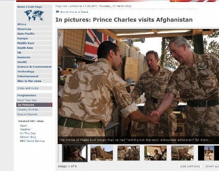 據(jù)報道,查爾斯25日直入塔利班活動較為頻繁的阿富汗南部赫爾曼德省,慰問駐扎在當?shù)氐挠④娛勘。這是阿富汗戰(zhàn)爭以來查爾斯首次慰問駐阿前線官兵。
