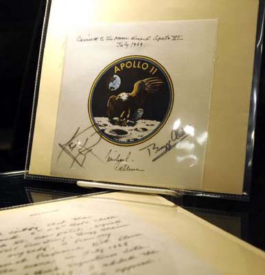 另一個驚喜是,一枚原來估價最高達(dá)三萬五千美元的“阿波羅十一號”徽章,竟以六萬一千美元售出。這枚徽章直徑長八點九厘米,上面印有一只在月球表面上空飛行的鷹。