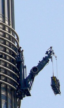 事實(shí)上,在哈利法塔向世界展示自己“風(fēng)姿”之前的數(shù)個月,承建方三星-BESIX-Arabtec合資公司卻犯下一個大錯誤,他們竟然忘記給高樓的頂樓安裝燈盞。因此,工程師米克.弗拉哈蒂(Mick Flaherty)不得不每天在未竣工的塔尖上工作,將塔頂?shù)臒舭惭b好。