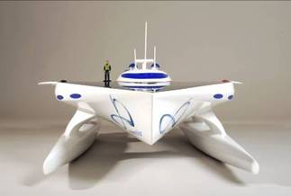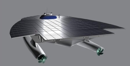 船的上方設(shè)有面積達500平方米的太陽能板,圍繞著中間凸起的駕駛艙。