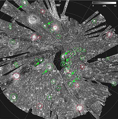 Mini-Sar發(fā)現(xiàn)的北極附近的40多個(gè)隕坑里的水冰寬度不等,直徑從2公里到15公里之間。盡管不能測(cè)出隕坑的深度,但科學(xué)家說,這些水冰至少應(yīng)該在2米厚以上,才會(huì)讓月船一號(hào)測(cè)出。