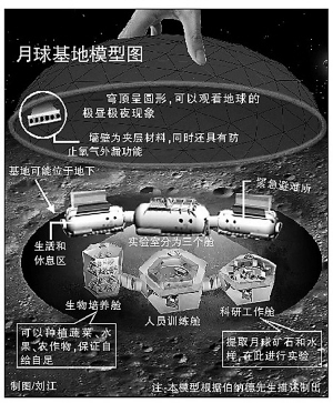 據(jù)介紹,月球基地或?qū)⑦x址地下。地下將設有緊急避難所;氐膶嶒炇铱梢苑譃槿齻艙,分別是生物培養(yǎng)艙、科研工作艙和人員訓練艙。