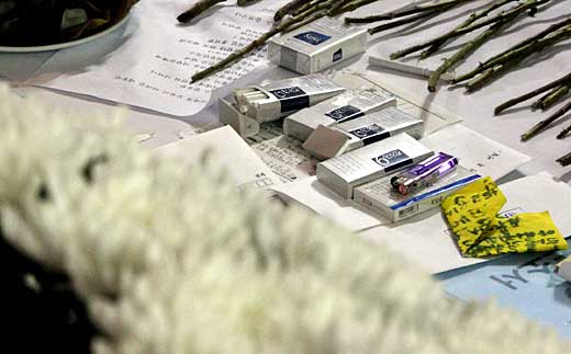 中新網(wǎng)5月26日電 韓國前總統(tǒng)盧武鉉23日跳崖自殺前,曾詢問陪同登山的警護官“有沒有煙”。這一事實被報道之后,向盧武鉉靈前敬上一支煙成了一種“前所未有的吊唁儀式”。在韓國各地祭所的盧武鉉遺像前,很容易就能看到堆成小山的香煙。