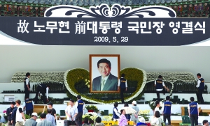 這一系列儀式結(jié)束之后,盧武鉉的遺體將在水原火葬場火化。骨灰臨時(shí)安放在供有他父母靈牌的寺廟內(nèi),之后在他住所附近的小山中埋葬。