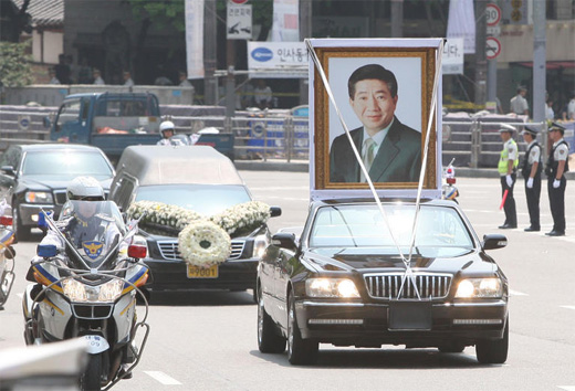 當(dāng)?shù)貢r(shí)間29日凌晨5時(shí),盧武鉉的出殯儀式結(jié)束后,靈車6時(shí)許離開慶尚南道金海市進(jìn)泳邑峰下村,4小時(shí)50分鐘后來到首爾。