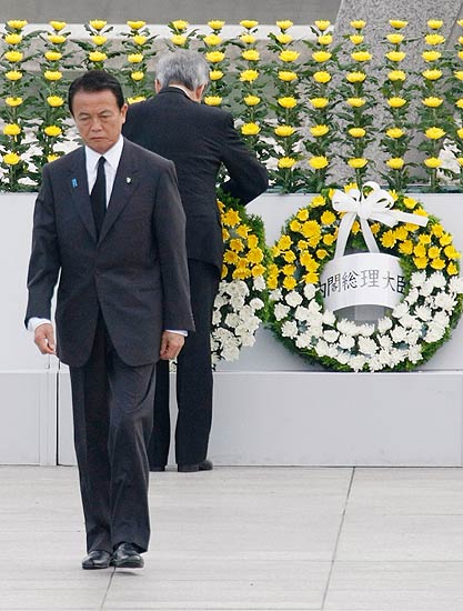 日本首相麻生太郎在發(fā)言中表示:“日本今后將繼續(xù)堅持‘無核三原則’,并率先在國際社會中積極呼吁廢除核武器和實現(xiàn)永久和平。”(記者 張國清)