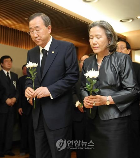 中新網(wǎng)8月19日電 據(jù)聯(lián)合國網(wǎng)站報道,聯(lián)合國秘書長潘基文8月18日結(jié)束了對韓國的訪問。離開首爾之前,他專程前往當(dāng)天病逝的韓國前總統(tǒng)金大中的靈堂進(jìn)行了吊唁。