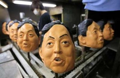 據(jù)日本共同社報道,生產(chǎn)該系列面具的玩具廠商“小川工作室”介紹,鳩山的人物面具從7月上旬開始發(fā)售,在8月30日投票日之前大約賣出200個。但選舉結(jié)果出來的第二天訂單就開始急速增加,短短5天就收到了約1000個的訂單,以致于員工們不得不全力趕工。