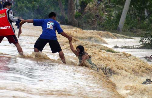 許多地區(qū)的洪水高達(dá)兩層樓高,被洪水困在屋頂?shù)木用袂疤焱砩暇烷_始紛紛打電話到無(wú)線廣播電臺(tái)求救。這簡(jiǎn)直就是兩星期前,臺(tái)風(fēng)“凱薩娜”襲擊菲律賓時(shí),大馬尼拉區(qū)所發(fā)生的情形的再版!皠P薩娜”引發(fā)的洪水使大馬尼拉區(qū)和附近省份頓成澤國(guó),交通癱瘓超過(guò)12小時(shí),并造成300多人喪生。