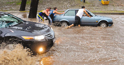 馬場的一名目擊者表示,天色瞬間昏暗,暴風(fēng)驟然而來,接著下了10分鐘冰雹,把賽道變成白色。市中心部分街道水深及膝,民眾冒著暴雨涉水而行,情況狼狽。氣象局在18分鐘內(nèi)錄得19毫米雨量,不足1小時(shí)便達(dá)33毫米。當(dāng)局表示,從未見過這樣的風(fēng)暴,預(yù)測將會(huì)持續(xù)。