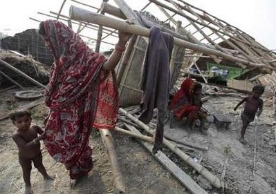 熱帶風(fēng)暴風(fēng)速高達(dá)每小時(shí)160公里,13日午夜左右席卷印度東北部與鄰國(guó)孟加拉國(guó),摧毀鐵皮屋頂?shù)哪辔,將?shù)木連根拔起并吹落電線(xiàn)。