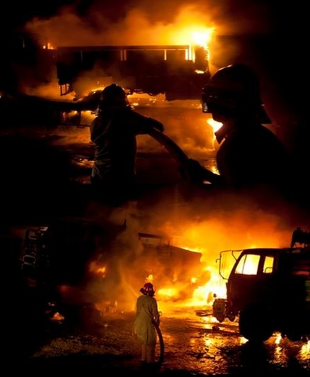 武裝分子先使用槍支及手榴彈等武器,對(duì)車隊(duì)開火,打死7人,造成另外7人受傷。隨后,武裝分子縱火燒毀車輛,一共有10多輛車被付之一炬。目擊者稱,大約有20個(gè)集裝箱起火燃燒。由于輪胎燃燒,油罐起火,現(xiàn)場(chǎng)發(fā)生一系列爆炸。