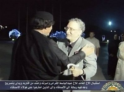 20日傍晚,梅格拉伊專機抵達(dá)的黎波里機場。他在機場受到了“英雄般的”熱烈歡迎。