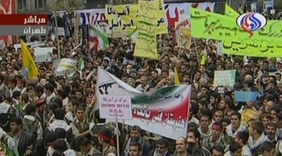 示威人群包圍了原美國(guó)大使館舊址,高呼“打倒美國(guó)!”、“以色列去死!”等口號(hào)。示威人群還把寫著“山姆大叔”標(biāo)志的海報(bào)撕毀,并高喊“我們血管中流淌的鮮血,是我們奉獻(xiàn)給偉大領(lǐng)袖的禮物!