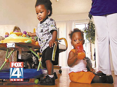 中新網(wǎng)5月19日電 美國得克薩斯州達(dá)拉斯一名20歲女子,于11個月前誕下一對雙胞胎,兩名男嬰出生時間僅相差7分鐘。離奇的是,這對雙胞胎竟然“同母異父”。原來,該名女子懷孕時背夫偷漢,兩粒不同卵子在短時間內(nèi)分別受精,出現(xiàn)不同生父的雙胞胎情況罕見,機(jī)率僅百萬分之一。