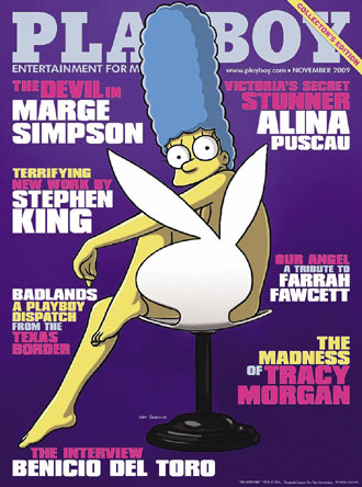 據(jù)美國《世界日報》報道,繼瑪麗蓮.夢露、辛迪.克勞馥、貓頭鷹餐館(Hooters)性感女侍等各界美女之后,卡通電視劇《辛普森家庭》里的媽媽瑪吉(Marge)首開半個多世紀(jì)來的紀(jì)錄,成為第一個登上《花花公子》雜志封面的卡通人物。