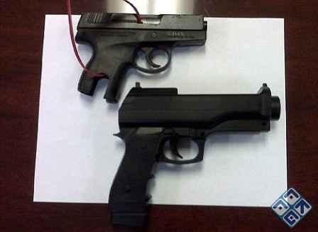 警方展示了從夏安家拿到的兩樣?xùn)|西:游戲手柄和那把“肇事”的手槍。田納西州威爾遜郡警長稱,這二者實在太相像了,一個兩歲小女孩要精確地分辨出二者區(qū)別,實在是很困難。