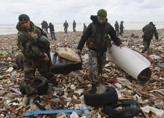 目前,有關方面已經(jīng)鎖定了飛機墜海的地點,為黎巴嫩沿海小鎮(zhèn)納阿梅以西約3.5公里海域。飛機墜毀后幾個小時,一些殘骸和機上物品被沖上了附近的海岸,包括座椅、嬰兒鞋、滅火器、手提箱和藥瓶等。
