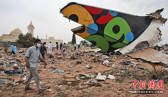 中新網(wǎng)5月12日電 綜合報道 當?shù)貢r間12日早晨6點,一架從南非約翰內(nèi)斯堡起飛的利比亞泛非航空公司(Afriqiyah Airways)的空客A330客機在試圖降落利比亞首都的黎波里機場時突然墜毀,機上載有104名乘客和機組人員,除1名據(jù)信為荷蘭籍的10歲男童幸存外,其余103人全部遇難。