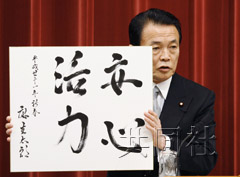 中新網1月5日電 據新加坡《聯(lián)合早報》報道,日本首相麻生太郎酷愛看漫畫,卻因為經常讀錯日文漢字,而被日本動畫大師宮崎駿譏笑。不過,麻生太郎為了證明自己對漢字的認識和對書法的掌握,元旦時揮毫寫下了“安心活力”四個字。