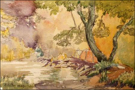 據(jù)當(dāng)?shù)孛襟w報道,在這些畫作中,有一幅據(jù)信是希特勒的自畫像,畫面中的男子身著棕色服裝,凝視著葡萄酒色的河水,畫作落款時間是1910年,簽名是希特勒的名字“A.Hitler”,而在畫中人物的身上則草寫著希特勒名字的縮寫“A.H.”。這幅畫以1萬英鎊拍出,買家稱打算將這幅畫掛在家中或辦公室里。