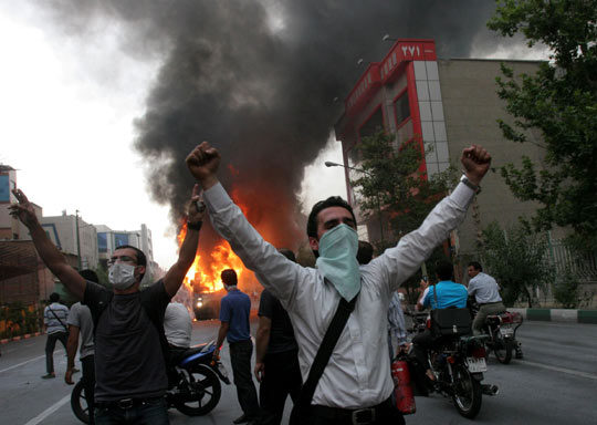 據(jù)悉,在德黑蘭,有成千上萬的穆薩維的支持者上街抗議內(nèi)賈德。警方不得不動用催淚瓦斯驅(qū)散示威者,并且放了四五次空槍。