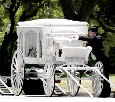 中新網(wǎng)7月1日電 據(jù)英國《每日郵報(bào)》報(bào)道,“流行天王”邁克爾•杰克遜的生與死都與夢幻有關(guān)。不同于常人用黑車出殯,杰克遜的遺體屆時(shí)將用一輛白色馬車運(yùn)抵葬禮。
