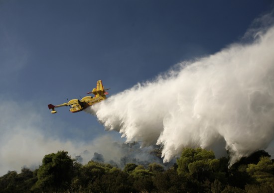 當天,距雅典西北70公里左右處的基澤羅那斯山發(fā)生山林大火,由于這個地區(qū)風力很大,滅火飛機不能靠近,只有直升機在空中灑水救火,火勢很難控制。消防人員緊急疏散了該地區(qū)著名度假圣地杰梅諾港的居民。