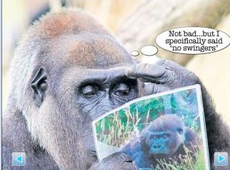 中新網(wǎng)8月29日電 據(jù)臺灣“今日新聞”報(bào)道,獨(dú)守“閨房”已經(jīng)很久的大猩猩阿菲,正在仔細(xì)端詳相親對象“阿波”的照片。這張照片是倫敦動物園園方送給阿菲的,他們打算介紹“阿波”給阿菲作未來男朋友。