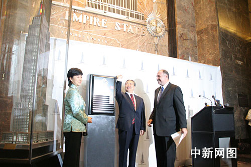 中新社紐約九月三十日電(記者 魏晞)九月三十日,紐約地標(biāo)性建筑“帝國(guó)大廈”舉行隆重的“亮燈儀式”:高高矗立在曼哈頓中城的帝國(guó)大廈大樓頂端,當(dāng)晚將亮起代表中國(guó)的“紅黃紅”三層雙色彩燈,整個(gè)紐約的夜空都將因此變成“中國(guó)色彩”,這也是帝國(guó)大廈首次為了中國(guó)國(guó)慶亮燈。