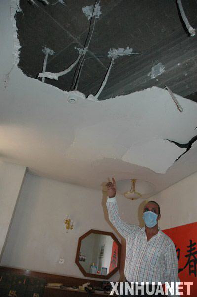 就在拿到相機(jī)轉(zhuǎn)身的一瞬間,第二聲巨響響起,整個大樓劇烈顫抖起來,陽臺的玻璃門爆裂,無數(shù)的碎玻璃打在記者剛離開的辦公桌前。陽臺上的衛(wèi)星電話、辦公桌上的英文字典和地上的垃圾桶被氣浪掀飛起來,記者也被氣浪掀倒在沙發(fā)后。鋁合金門框整個砸到墻上。記者的頭頂碎石亂飛,天花板出現(xiàn)了3個大窟窿,落下的天花板砸在記者床上。樓道里傳來其他房間的天花板和門窗倒塌之聲,嗆人的煙霧充滿整個樓道。