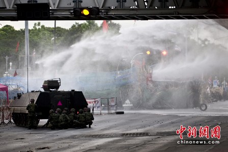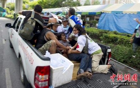 泰國軍方19日出動裝甲車、直升機以及1000名左右士兵,對在首都曼谷市中心商業(yè)區(qū)集結(jié)數(shù)月的反政府“紅衫軍”示威者發(fā)起清場行動。軍方?jīng)_破了“紅衫軍”所筑的路障,進入“紅衫軍”營地內(nèi),雙方爆發(fā)槍戰(zhàn)。除2人死亡外,目前至少有9人在沖突中受傷。