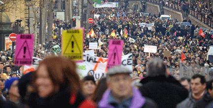 法國政府今年初共投入了24億歐元刺激經濟,但法國人認為這筆錢不足以保護他們的職位及工資。法國失業(yè)人數至今已達200萬,預料在未來12個月,失業(yè)率或會升至10%。今年1月,逾100萬名法國工人參加大罷工,工會呼吁薩科齊廢除其削減公營機構職位的計劃。