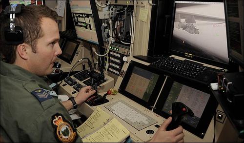 坐在扶手椅上的飛行員駐扎在美國(guó)內(nèi)華達(dá)沙漠基地中心的一間地面控制站內(nèi)。與電子游戲玩家一樣,他們使用一個(gè)手柄來(lái)操縱價(jià)值6百萬(wàn)英鎊的無(wú)人機(jī),手柄上有一個(gè)開火鍵。“收割者”無(wú)人機(jī)上的偵察攝像機(jī)能確定敵方狙擊手、恐怖分子隱藏地點(diǎn)的位置,干掉恐怖分子的機(jī)槍陣地、武器庫(kù)、路邊炸彈。“收割者”無(wú)人機(jī)飛行員、32歲的基爾南中校來(lái)自諾丁漢。他說:“在這里,你每天都在前線,雖然距阿富汗有12874公里的距離,你每天都在這里執(zhí)行飛行任務(wù)以支援駐阿富汗的部隊(duì)!