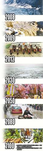 雖然確定這些潛在的巨變的日期并不容易,但是以下時(shí)間表有助于我們從宏觀角度看地球的未來(lái)。這個(gè)時(shí)間表,是根據(jù)近期多項(xiàng)研究和政府間氣候變化委員會(huì)報(bào)告所制訂。